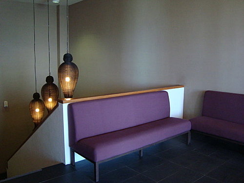 開放的空間紫薇紅的座椅,立刻搶走了你的視線。